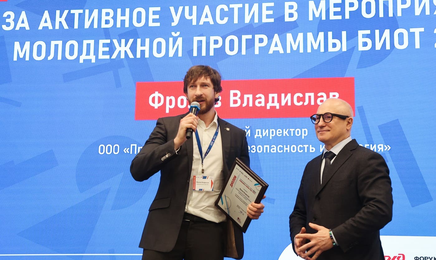 От компании «ПБЭ» на церемонии присутствовал генеральный директор Фролов Владислав Викторович, которому был вручен диплом за активное участие в мероприятиях молодёжной программы БИОТ-2024.