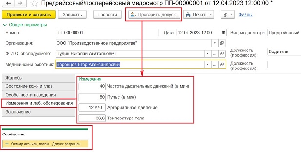 ·        Оперативный контроль допусков: Результаты медосмотров из ЭСМО позволяют оперативно проверить допуск сотрудника при заполнении ключевых документов: