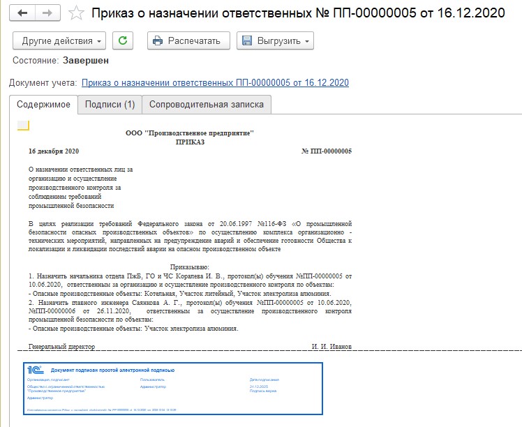 «1C:Производственная безопасность. Промышленная безопасность» версия 2.0.1.40
