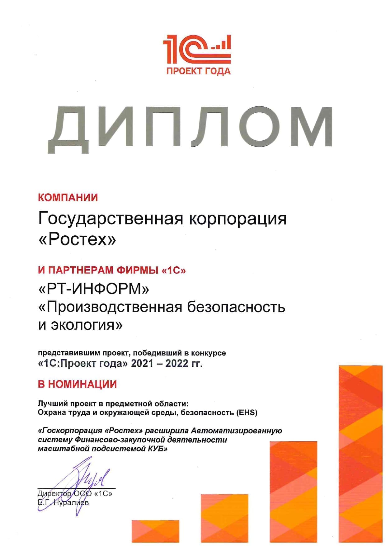 Проект Госкорпорации «РОСТЕХ», реализованный совместно с ООО «РТ-ИНФОРМ», удостоился победы в номинации «Лучший проект в предметной области».