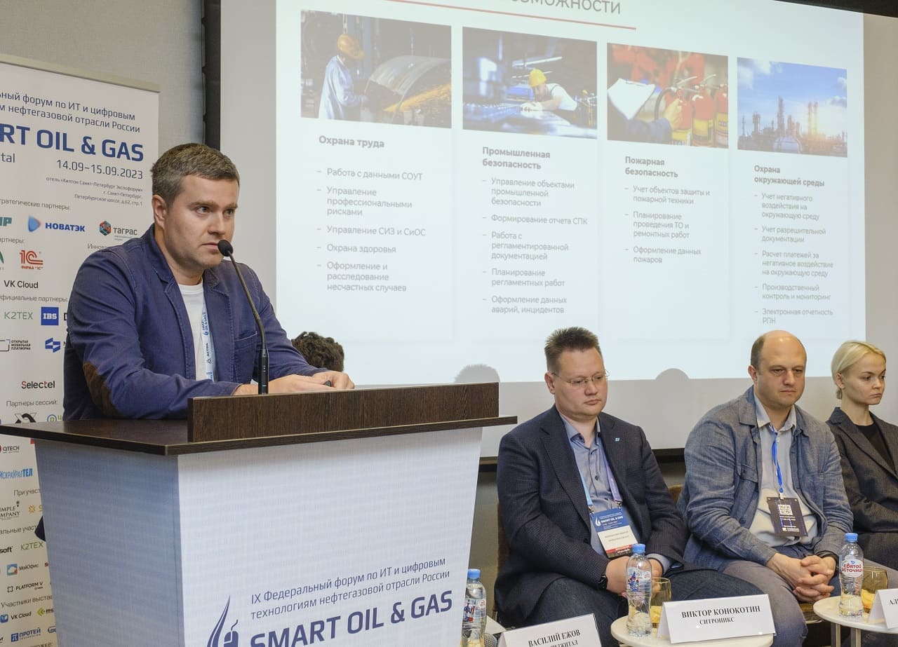 На сессии «Комплексная безопасность на объектах нефтегаза» с докладом на тему «Автоматизация техносферной безопасности крупных предприятий с продуктом «1С:EHS Комплексная производственная безопасность КОРП» выступил заместитель генерального директора по технологическим вопросам компании «ПБЭ» Сергей Коструб. Он рассказал участникам сессии о преимуществах автоматизации бизнес-процессов охраны труда и окружающей среды, в числе которых:
